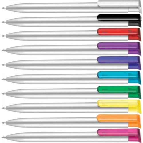 The Argent Ballpen has a satin silver barrel and polished translucent clip. Please note, the black clip has a solid black finish. Available in black or blue ink. 24-hour express option.